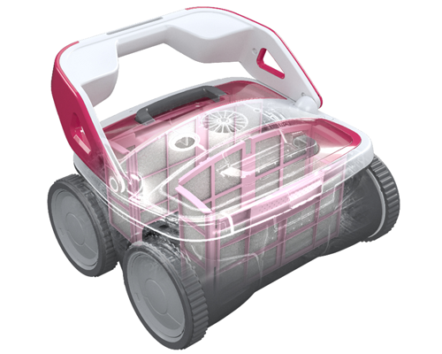 Die vier Antriebs-​Bürsten lösen Verunreinigungen und säubern die Oberfläche, die rotierende Bürste sorgt für eine einwandfreie Reinigung des Beckenbodens. Mit den vier großen Antriebsrädern, kann der Poolroboter gut Hindernisse und glatte Oberflächen überwinden und sind somit für alle Beckenarten geeignet sind: Folienbecken, Fliesen, Polyesterpools und sogar Spritzbeton. Sie gewährleisten bestmögliche Haftung an den Beckenwänden, unabhängig von deren Neigung.