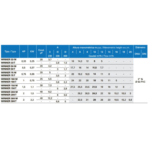 Asynchroner Motor, luftdicht verschlossen. Schutzart IP55. 2900 U/min. 50-60 Hz. Isolierung Klasse F. Die Kugellager des Motors sind dauerhaft geschmiert und garantieren eine lange Lebensdauer und einen niedrigen Geräuschpegel.