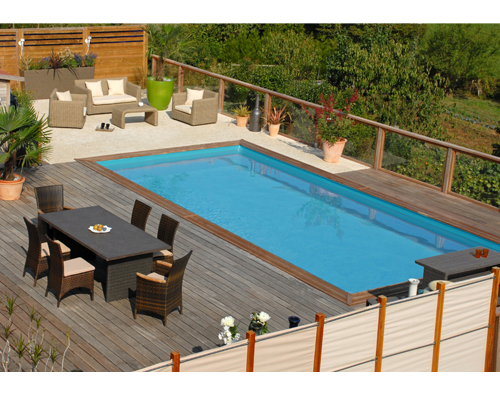 Gre Holzpool EVORA - Poolset aus Massivholz rechteckig - 620 x 420 x 133 cm