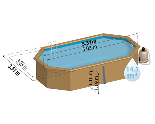 Gre Holzpool Grenade 2 - Poolset aus Massivholz oval - 436 x 336 x 117 cm