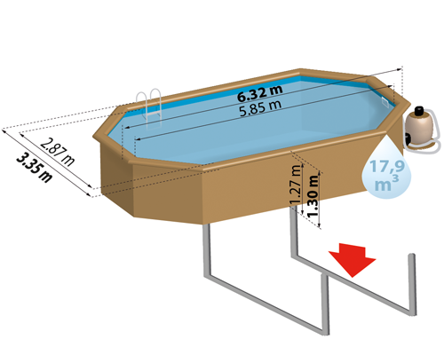 Gre Holzpool MACADAMIA- Poolset aus Massivholz oval - 632 x 335 x 130 cm