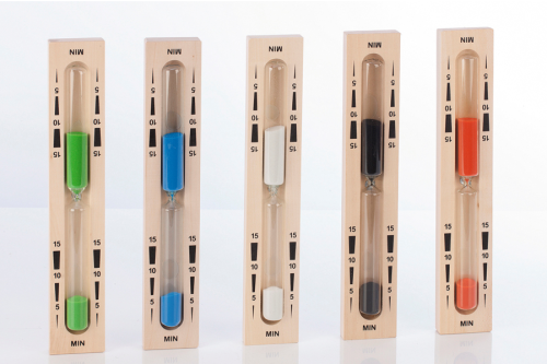 Die Sanduhr besticht durch ein zeitloses, schlichtes Design. Die Kombination von hellem Holz mit schwarzen Aufdruck der übersichtlichen 5 Minutenskala