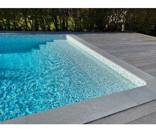 Die gebürstete Oberfläche ist nicht nur angenehm und schön, sie ist auch dauerhaft rutschfest. Die Serie ist in acht Farben erhältlich und wird mit passenden geraden und Ecksteinen geliefert. Die dazugehörigen Terrassenfliesen (60 x 60cm), die zu Kiruna passen, vervollständigen Ihren Poolbereich.