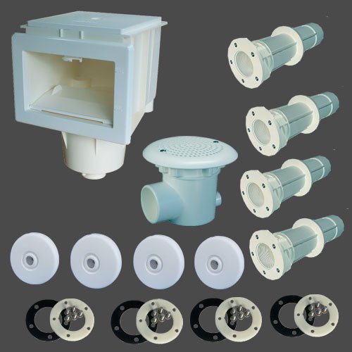 DIeses Set besteht aus einem hochwertigen Skimmer, einem Bodenablauf und 4 Stk. Einlaufdüsen.