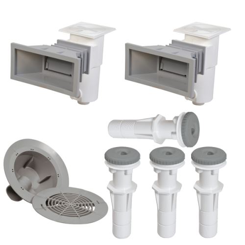 Einbauteile - SET von BWT mit 2 Skimmer + 4 Einlaufdüsen + 1 Bodenablauf, Farbe wählbar