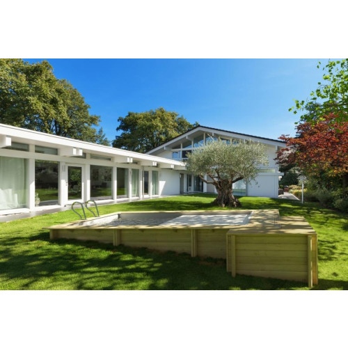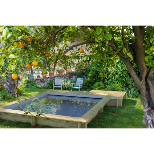 Die Pools aus sorgfältig ausgewähltem Massivholz können ganz oder teilweise ins Erdreich eingelassen werden, eignen sich aber auch